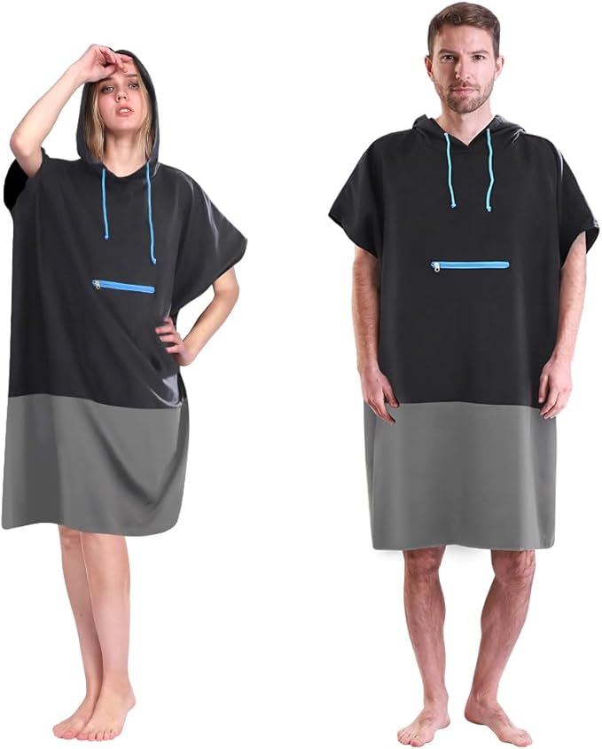 This towel poncho allows convenient changing at the beach while doubling as a quick-dry towel.