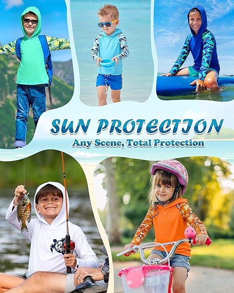 Lightweight UV swim shirt designed to keep children protected during beach and water activities.